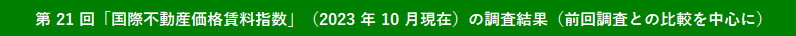 第21回「国際不動産価格賃料指数」(2023年10月現在)の調査結果概要を次のとおり公表いたします。
