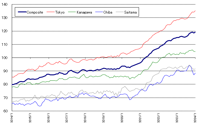 当研究所は、2024年3月26日に「不動研住宅価格指数」1月値を公表いたしました。